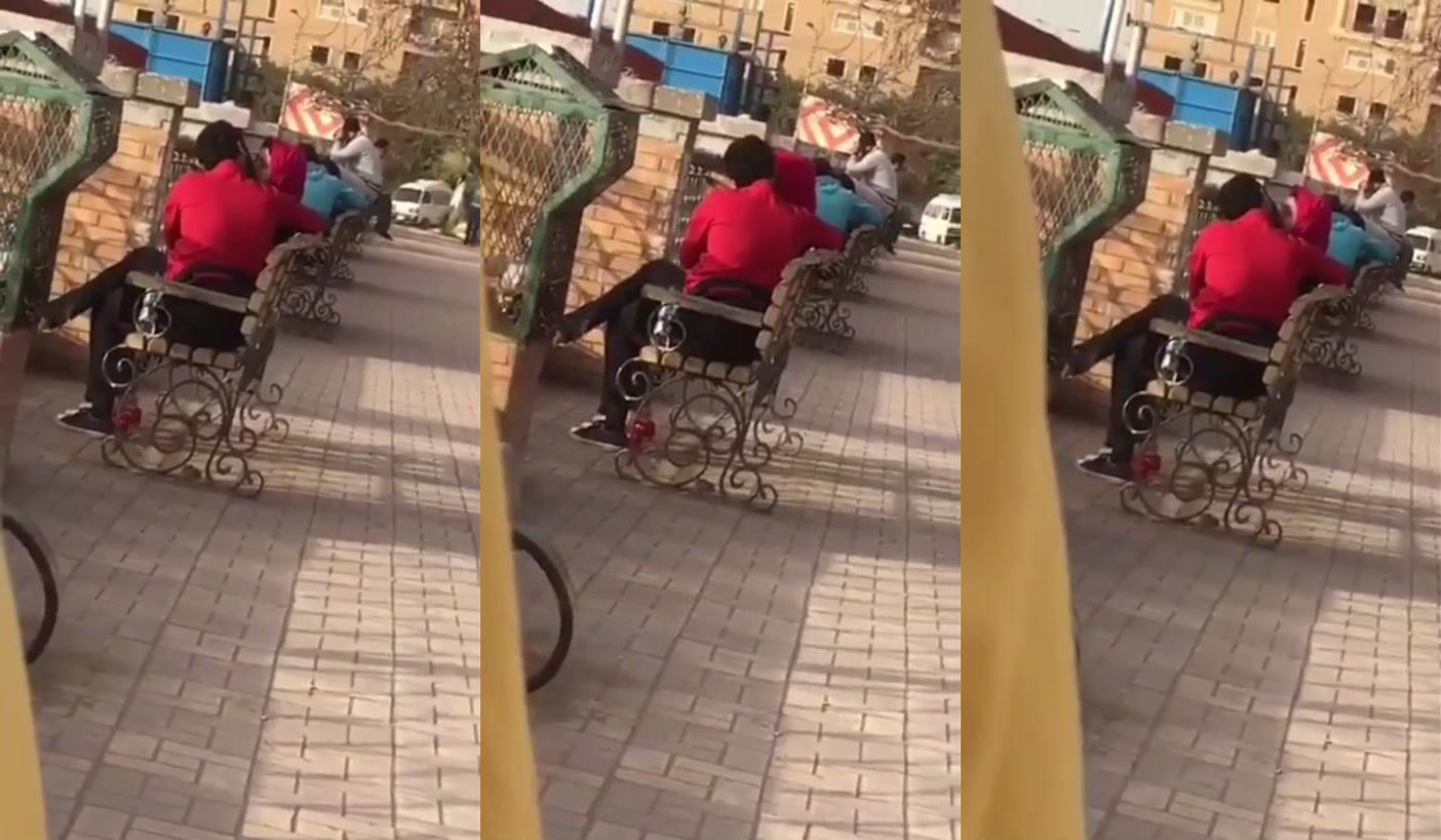 شاب ماسك بنت في الحديقة وهاريها بوس وتقفيش ويتصور فيديو مسرب في مكان عام الشاب مع البنت قاعدن علي الكرسي يهيجو ويهرو بعض بوس وتقفيش بزاز وواحد يصورهم وينشر الفيديو علي سكس نيك